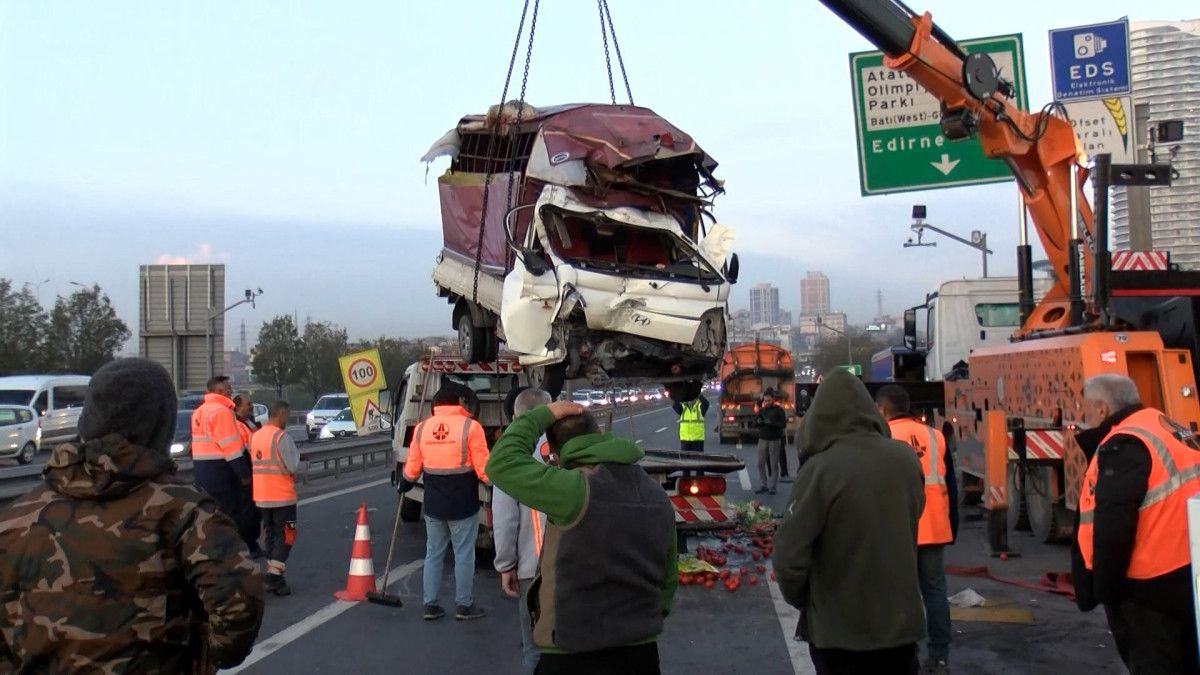 Kaza nedeniyle TEM Otoyolu’nda 2 şerit trafiğe kapanırken trafik akışı tek şeritten kontrollü olarak sağlandı.