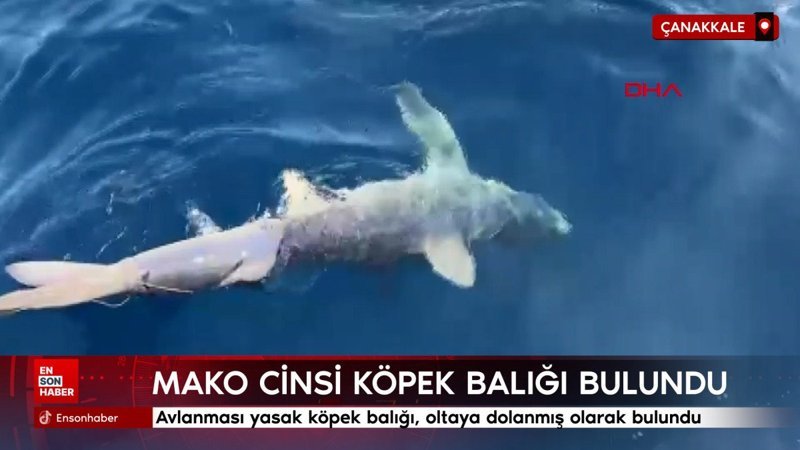 Çanakkale’nin Gökçeada ilçesinde paraketa oltasına dolanmış halde bulunan nesli tükenme tehlikesindeki ‘mako’ cinsi köpek balığı, kurtarılarak yeniden suya bırakıldı.