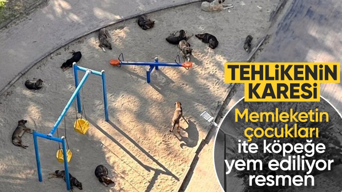 Çocuk parkını mesken tutan sokak köpeği çetesi