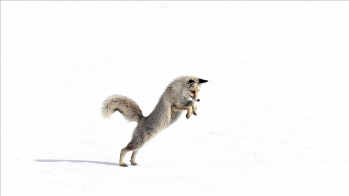 Göle ilçesinde doğada aç kalan bir kızıl tilkinin, karla kaplı arazide 1 saat iz sürüp avını yakaladığı anlar görüntülendi.