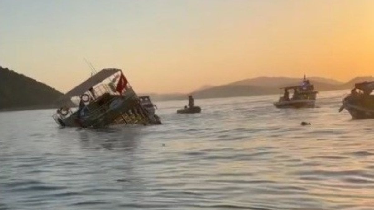 Aydın’ın Kuşadası ilçesi Güzelçamlı açıklarında su alan tur teknesi batarken, teknedeki kişiler yardıma gelen diğer tekneler tarafından kurtarıldı.