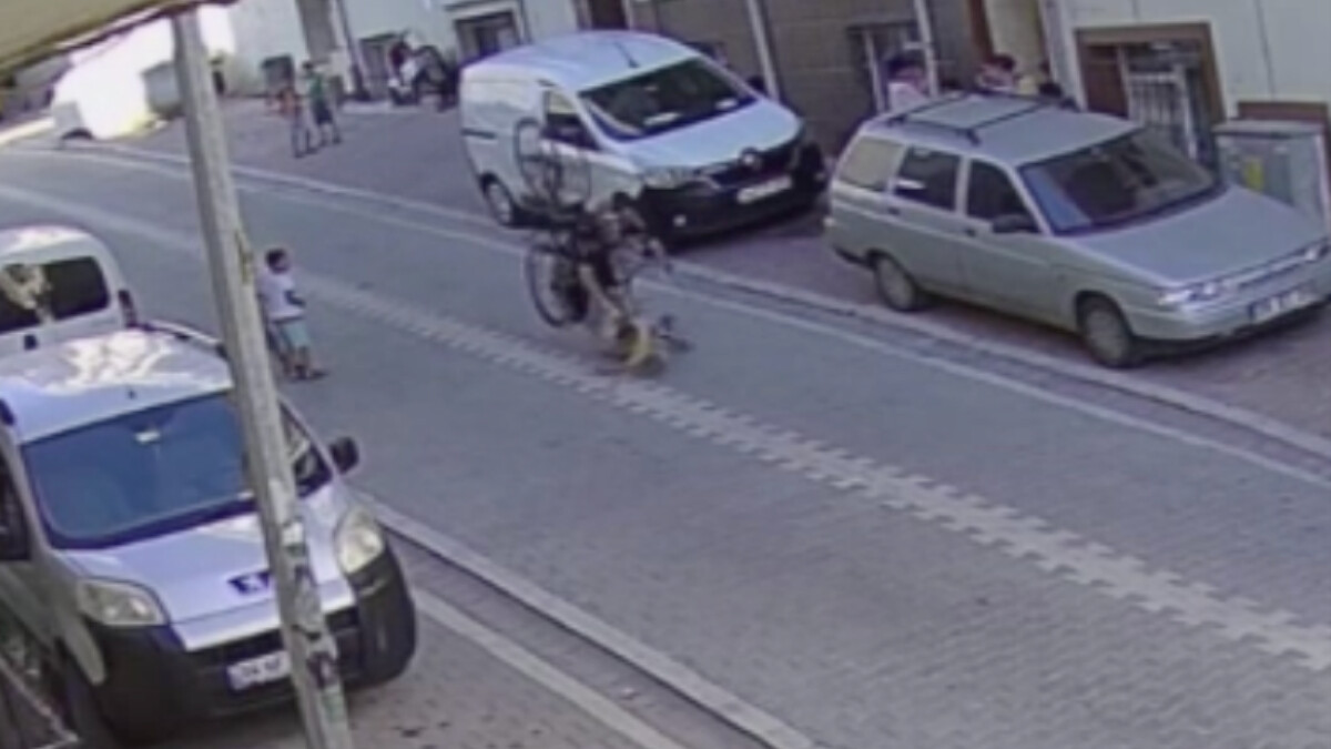 Bisikletiyle hızla ilerleyen genç, bu esnada yola fırlayan 9 yaşındaki Beytullah’a çarptı. Kaza etkisiyle bisikletin takla attığı kaza kameraya yansıdı.