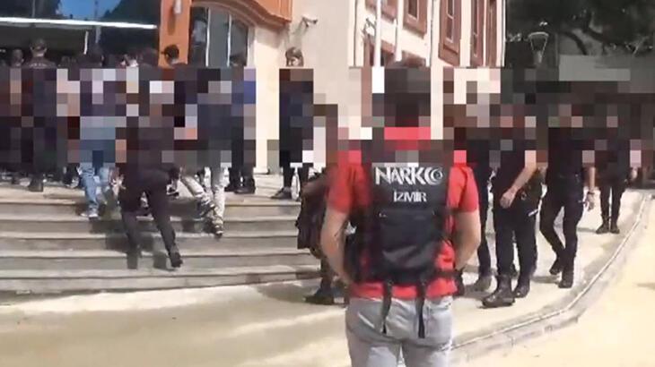 İzmir’de uyuşturucu tacirlerine yönelik 5 aydır süren teknik ve fiziki takibin ardından merkez ve 5 ilçede düzenlenen eş zamanlı operasyonda gözaltına alınan 46 şüpheliden 36’sı tutuklandı, 10’u adli kontrol şartıyla serbest bırakıldı.